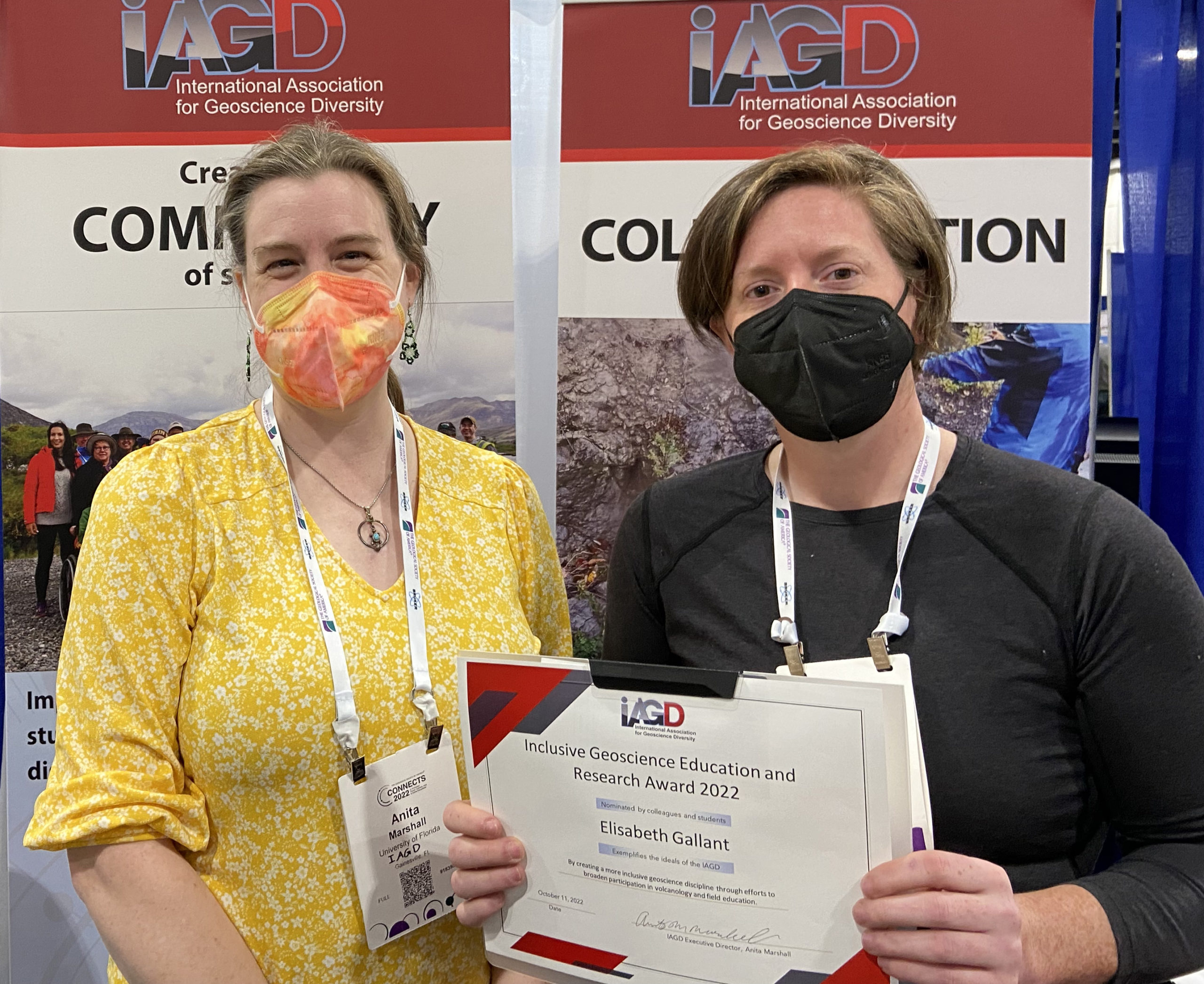 Dr. Gallant’s peers nominated her for efforts to make the discipline of volcanology more inclusive and accessible through service and scholarship. An excerpt from the peer nomination letter reads “Dr. Gallant weaves scientific rigor into addressing equitable access and inclusion in geosciences for members with disabilities and traditionally underrepresented groups…This is especially impactful because students and practitioners with disabilities might have multiple intersecting identities that compound issues of inclusion and accessibility. Her most recent coauthored publication “Volcanologists – Who are we and where are we going?” shows that discrimination related to gender, ethnicity, sexual orientation, religion, physical ability, and socio-economic background is occurring. Furthermore, she shows that intersecting discriminations compound the marginalization of aspiring volcanological community members.”